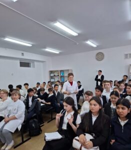 📍 №22 орта мектебінде маңызды семинар өтті! Жамбыл облыстық ЖИТС-тің алдын алу және онымен күрес жүргізу орталығының мамандары мектеп оқушыларымен кездесті. 🧠 Психологтар Бегманова М.С. және Салпыкова Г.Ж. жастарға АИТВ (адамның иммун тапшылығы вирусы) туралы жан-жақты ақпарат берді. Олар аурудың жұғу жолдары, қорғану тәсілдері, емделу мүмкіндіктері және қоғамдағы стигма мәселелерін кеңінен түсіндірді. 🎬 Іс-шара барысында: ақпараттық бүктемелер таратылды; бейнесюжеттер көрсетілді; студенттердің сұрақтарына жауап берілді. 💬 Мамандар ЖИТС орталығында тегін әрі анонимді түрде АИТВ-ға тест тапсыруға болатынын ерекше атап өтті. #Жамбылоблысы #ЖИТСорталығы #АИТВалдыналу #Жастарденсаулығы #СенімдіБолашақ #Денсаулық