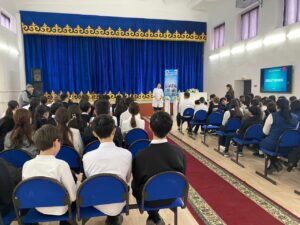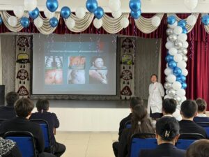 Дәріс барысында маман АИТВ-инфекциясының жұғу жолдары, алдын алу тәсілдері, қауіпсіз мінез-құлықтың рөлі, қоғамдағы стигма мен кемсітушілікке қарсы іс-әрекеттер туралы жан-жақты түсіндіріп, оқушылардың сұрақтарына жауап берді.
