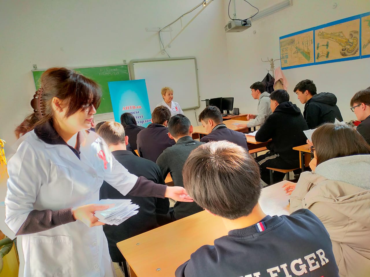 Дәріс барысында эпидемиолог дәрігер С. Дулатбаева және психолог маман Г. Шамурзаева студенттерге АИТВ-ның жұғу және алдын алу жолдары, қауіпсіз мінез-құлықтың маңызы, қоғамдағы стигма мен кемсітушілікті жоюдың өзектілігі туралы жан-жақты ақпарат берді.