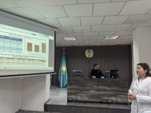 В ходе совещания заместитель главного врача по организационно-методической и противоэпидемической работе Г. Калметова выступила с докладом на тему «Эпидемиологическая ситуация по ВИЧ-инфекции за 12 месяцев 2025 года», в котором подробно остановилась на проделанной работе.